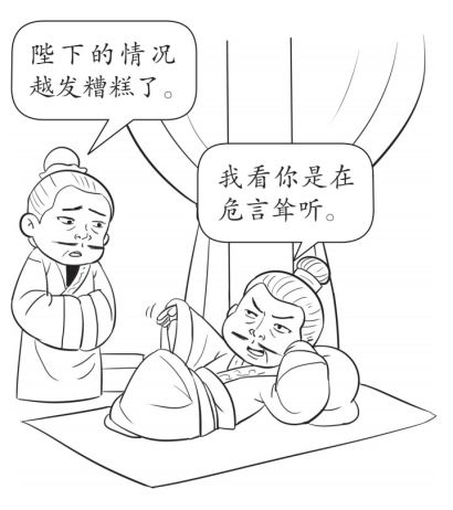 又过了十天,扁鹊第三次前来提醒蔡桓公,病情已经危及肠胃,情况越发严重了。但蔡桓公依旧固执己见,拒不接受治疗。扁鹊无奈至极,只能再次离去。