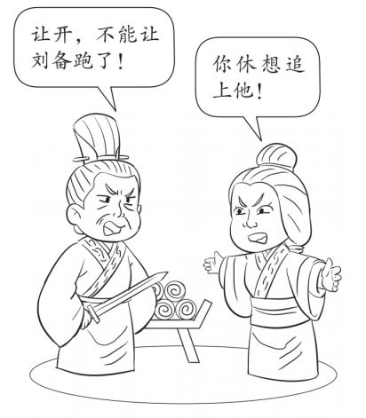 孙权之母吴国太见刘备英俊潇洒,心生欢喜,有意将爱女许配于他。周瑜与孙权虽不愿此事成真,却怕惹怒吴国太而不敢轻举妄动。刘备看准时机,劝说孙权的妹妹同往荆州,二人密谋在江边祭祖时趁机逃离东吴。周瑜得知消息,急忙派兵追赶,但孙权的妹妹出面阻拦,让他无计可施。正当周瑜焦急万分时,只见诸葛亮在江边等候,刘备等人已乘船远去。刘备的兵士望着岸边的吴兵,哈哈大笑,嘲讽道:“周郎妙计安天下,赔了夫人又折兵!”