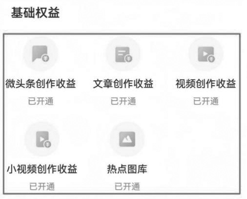 另外,有些平台需要手动开通收益开关,比如头条号(今日头条),需要到创作者中心依次开通微头条创作收益、文章创作收益、视频创作收益、小视频创作收益(直接点击打开就可以,没有门槛限制)。(如图2)