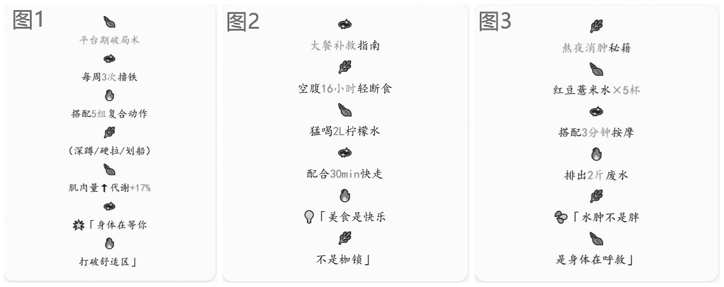 聚焦“平台期突破”“易瘦体质养成”等细分场景,用“3天掉秤5斤”等数字刺激用户。