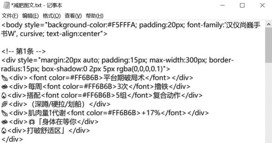 (见图1-6)接下来,只需使用截图工具按条截取(见图1-7),便获得了制作好的减肥图文内容。