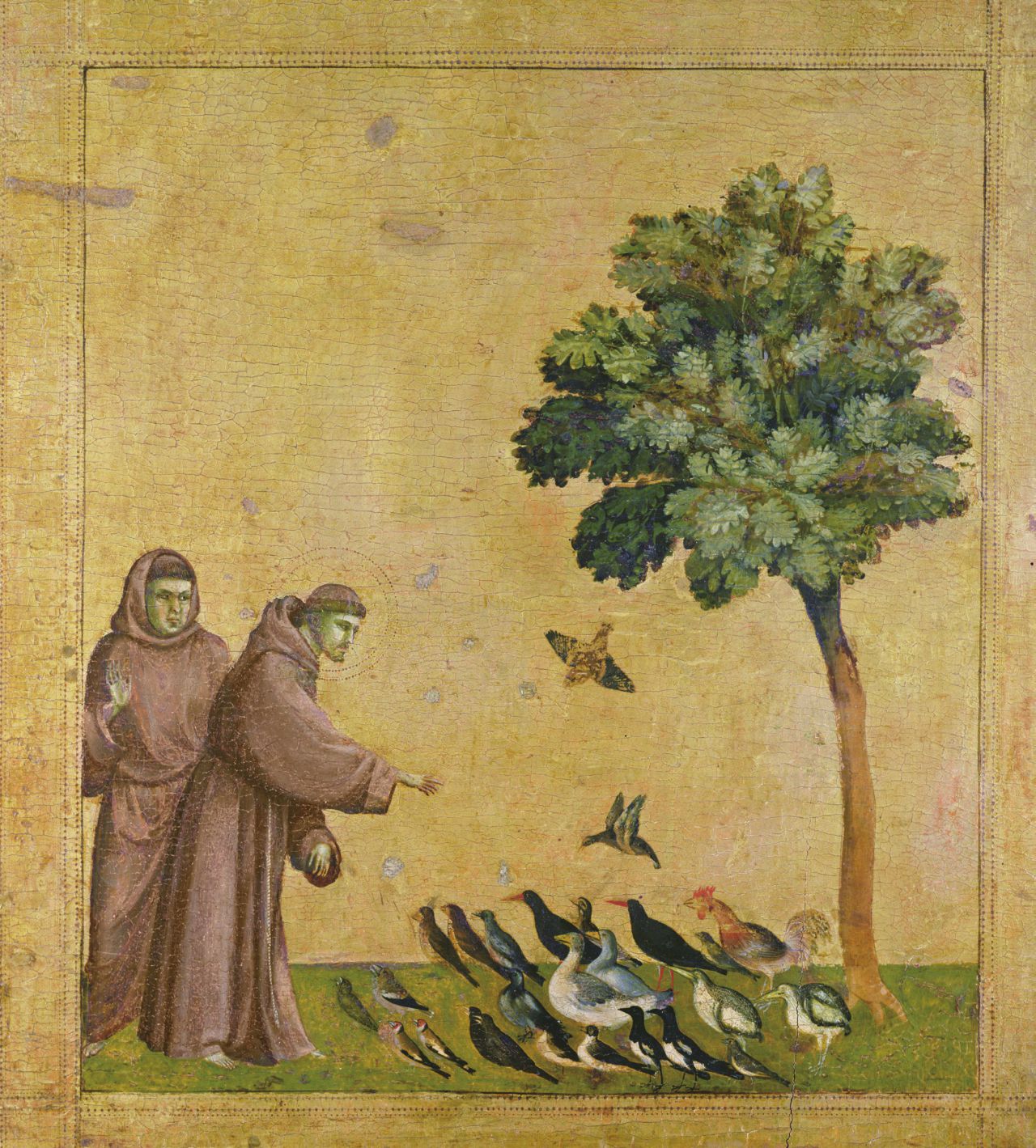 这还要归功于前一章提到的圣方济各。圣方济各走的是亲民路线,传说他甚至会给小鸟布道,告诉它们要感谢上帝赐予的食物和庇荫的树木。方圆百米的小鸟听到圣方济各的布道,都聚集在他跟前……
