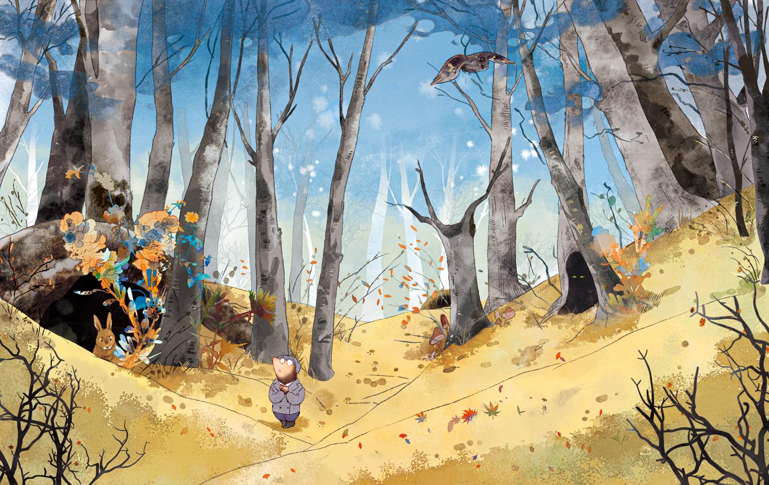 这天下午寒冷而静谧。当鼹鼠溜出暖融融的客厅走到户外时,头顶是钢一般灰白的天空,周围的原野光秃秃的,一片叶子也没有。鼹鼠觉得,这个冬日,他第一次看得那样远,也第一次将万事万物看得那般真切。大自然已经进入一年一度的酣睡,似乎把身上的衣服都踢掉了。在枝繁叶茂的夏天,矮林、小溪谷、采石场和所有隐秘之处都是供他探险的神秘宝地。现在,这些地方不仅可怜巴巴地现出了本色,还把自身的秘密都暴露无遗,仿佛在恳求他暂时忽视它们的破败贫瘠。等它们像以前一样披上华丽的伪装,定会再用那套老把戏哄骗诱惑他。从某种程度上来说,这景象虽有些凄凉,却也令人欢愉甚至振奋。鼹鼠很高兴自己喜欢原野这副剥去了盛装华服、质朴且粗犷的模样。他可以真真切切地看到大地裸露的骨骼,优美、强健、朴素。他不想要温暖的三叶草,也不想要结了籽、随风摇曳的青草。屏风似的树篱、帷帐般的山毛榉和榆树也离他越远越好。他满心欢喜地朝野树林奔去——它就躺在前方,宛如平静的南海里一片低矮瘆人的黝黑礁石。
