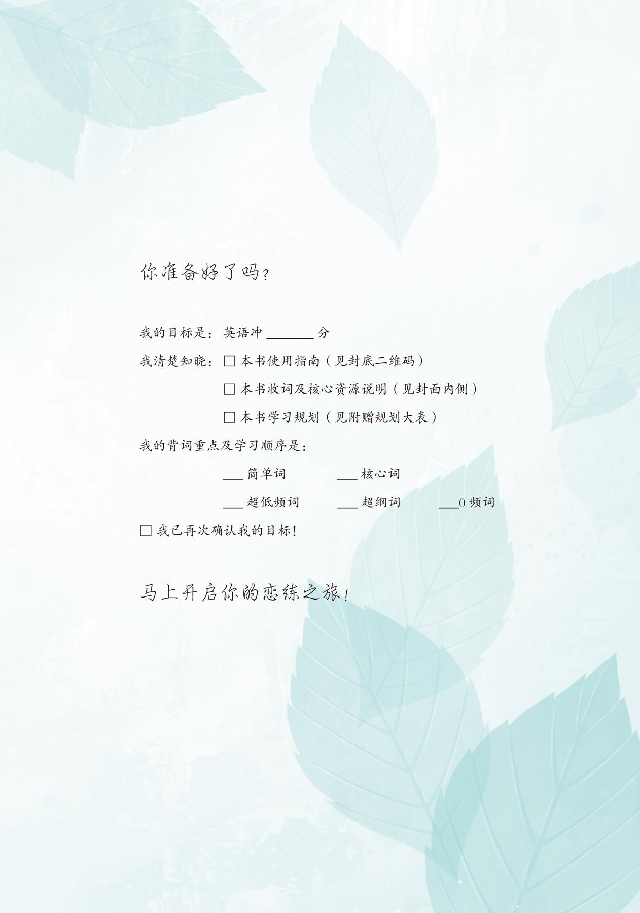 收词全且精准分层,更方便同学们快速锁定自己的背词重点, 备考不做无用功 !以下为全书背词建议,供参考。