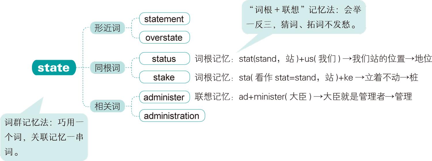 核心词作为全书的重中之重,采用了“恋练有词”经典的 词群记忆法 和 “词根+联想”记忆法 。这部分单词共分为493 组词群,每组词群都围绕一个主词构建而成,包含多个单词;词群内单词也有其内在逻辑,从词形、词根、词义三个维度分为形近词、同根词、相关词。每组词群以主词为干,单词间逻辑为旁支,将原本零散的单词有机串联,单词一记就是一串。同时,对于适合采用词根和联想记忆法的单词,也给出了相应的助记法。 科学背词,必然高效!