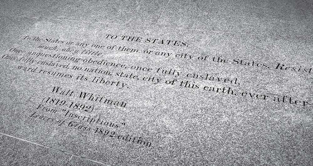 纽约市布鲁克林区的沃尔特·惠特曼公园里镌刻着惠特曼的短诗《告诫各州》的花岗岩地面 tgsSyw8AUMXA+3A4P6uI+BZCT7Osp37KYBVTCRPXzg+vawh81O98ucwGoqt9lJhY