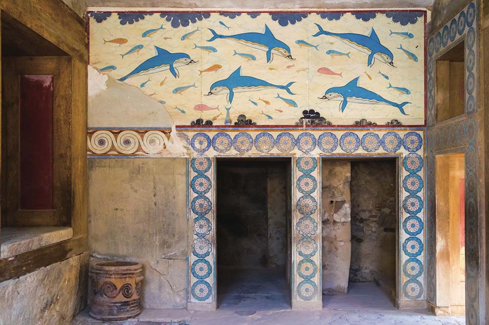 要之,克里特文化的特色,是最美的装饰美术、浮雕、象牙嵌等。而湿壁画(Fresco,一种胶画法),面目尤新,为绘画史的第一步。——教希腊人以感觉美的诱惑的,实在是这个克里特民族。倘然没有介绍埃及文化于希腊的这民族,希腊人的艺术世界恐怕不会开展的!克里特放射其文化的光于爱琴海中与海岸,历数千年。至希腊的独利亚(Doria)民族