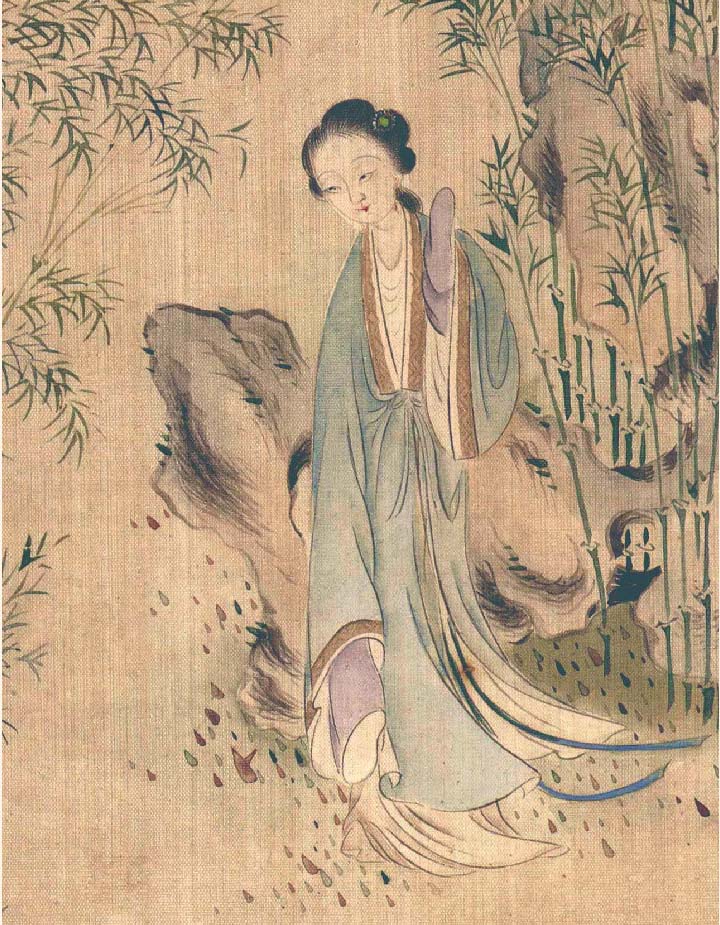 图1.32 清 改琦《红楼梦图咏》之林黛玉(局部)