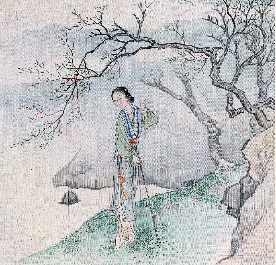 图1.33 清 费丹旭《十二金钗图》之黛玉葬花(局部)