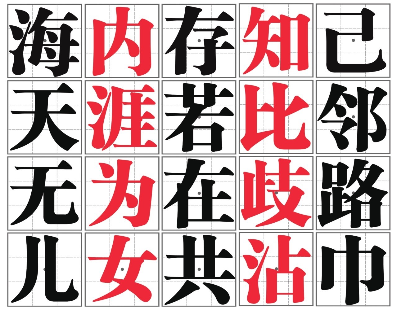 为了让大家更好地掌握宋体字的各种笔画,泰山老师总结了一个通俗易懂的口诀:“点如垂露撇似刀,钩似鹅头捺如扫,口字上下多一段,横尾有山弯带角。”另外,笔画要横细竖粗,横的右端及横折转弯处有装饰角,点、撇、捺、挑、钩的最宽处与竖宽度相同。