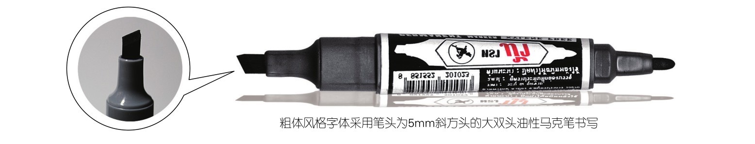 粗体风格字体,基本都是采用5mm的大双头油性马克笔进行书写,所以对于一些基础性的知识,比如握笔方法、各种笔画书写和衔接等,我们放在这一章节为大家讲解。