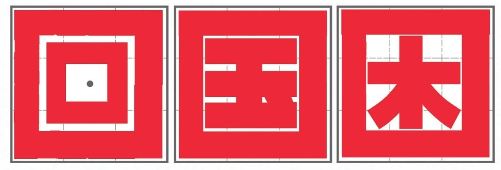 全包围结构,外框保持横平竖直且满格书写,里面被包围的笔画写到最大范围,把内部的空间填满。