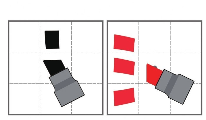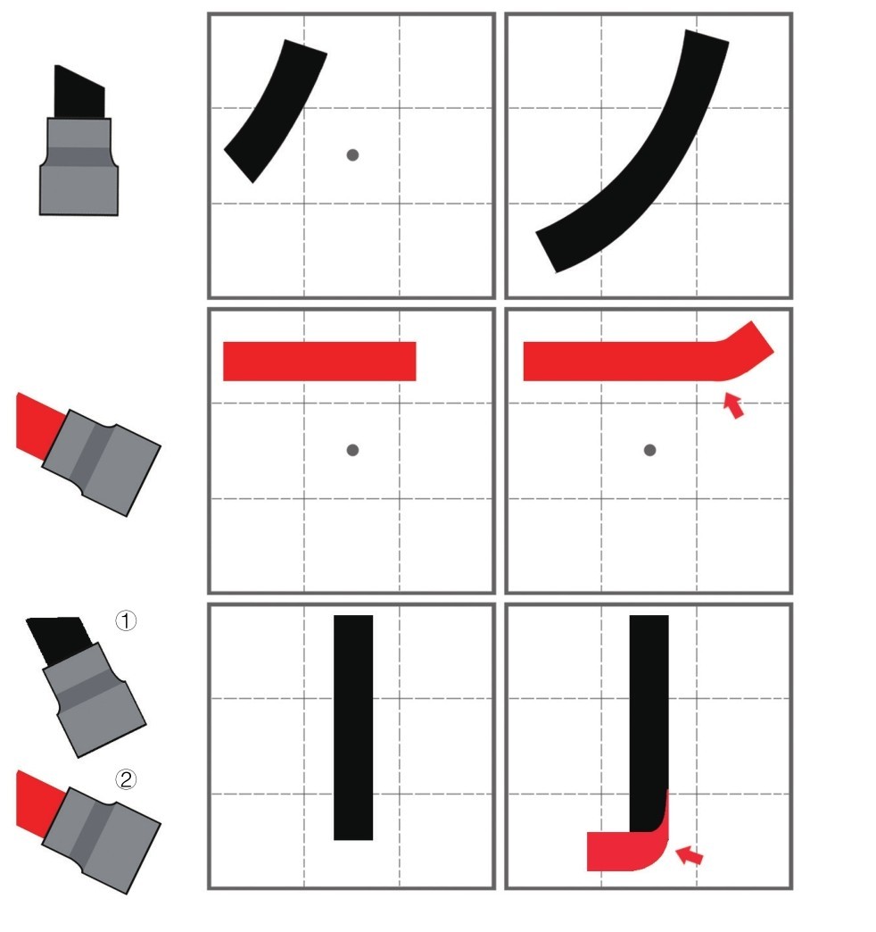 大双头油性马克笔的握笔方法和其他笔材相同,但书写笔画的时候,笔头的起笔方向会有所不同。