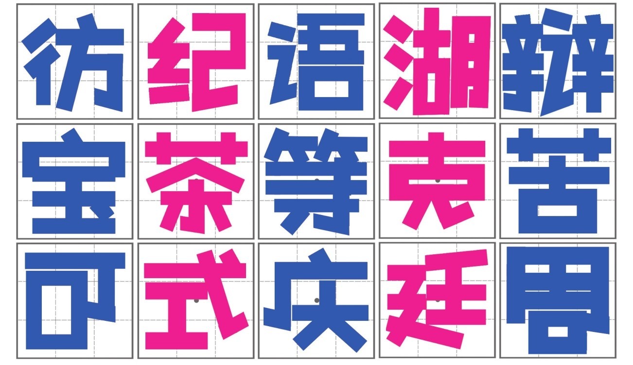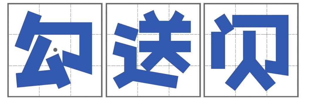 活体字是以黑变体字为基础演变过来的,黑变体字和黑体字上下宽度一致,方方正正,而活体字则呈现上宽下窄、上大下小的倒梯形结构,是头大身子小的卡通风格,在笔画上和黑变体字一样,除了保持横平竖直之外,把撇、捺、钩等笔画拉直书写。