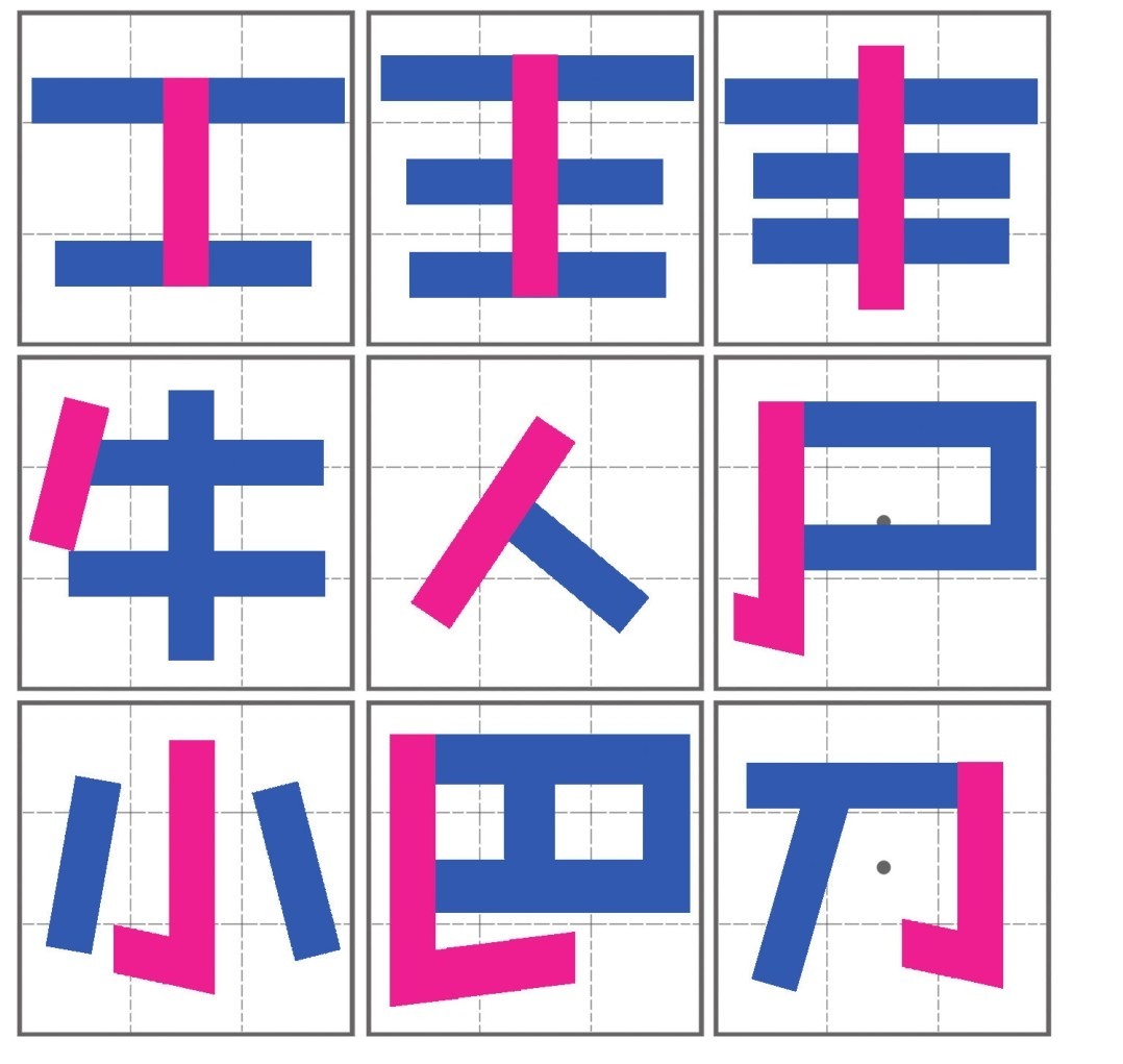 活体字,字体结构呈倒梯形;笔画上横平竖直,但是横要拉宽,竖要缩短;横多的要上宽下窄,横间距上松下紧;笔画多的字放大书写,笔画少的字要缩小书写。