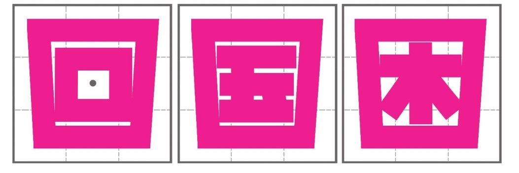 半包围部分在上方时要拉宽且缩短高度,在下方时则要缩短高度以及底部的宽度。