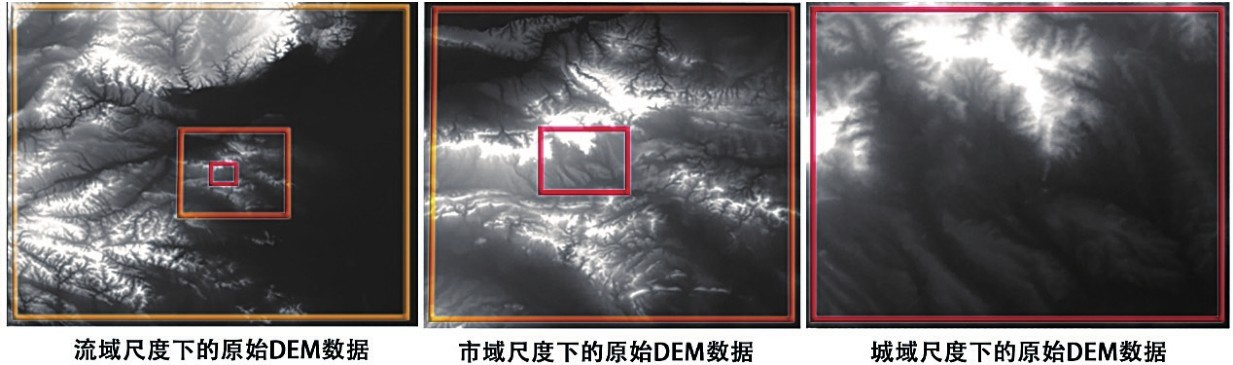 数据集的构建为后文各尺度下的数字化解析提供了数据基础。前文已对尺度效应及不同尺度和不同分辨率DEM数据之间的关系和可能产生的影响进行了叙述,因此,在具体解析开始之前,需要根据尺度划分结果对DEM数据进行处理。