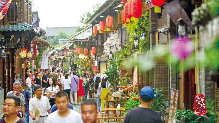 西街的川西气氛十分浓。曲曲折折的小道,古色古香的房屋,街边赤红色的灯笼,还有坐在街沿上的老街坊,他们两两相对摆龙门阵,做什么事情都用不着起身,满街的人都熟如自家人。数千年来,不仅古老的西街一直维持着如水般温润和谐的样貌,古老西街里的人也一直践行着人与人、人与自然的和谐相处。