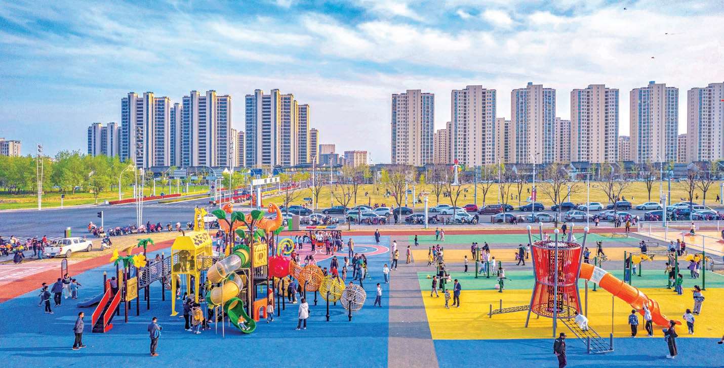 ◎通过人民群众共同奋斗把“蛋糕”做大做好,又通过合理的制度安排把“蛋糕”切好分好,保证老百姓安居乐业、社会安定有序。图为市民在家门口体育公园休闲健身