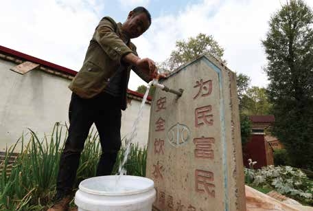 ▲ 2019 年 9 月 3 日,甘肃省渭源县元古堆村村民在自来水龙头前接水