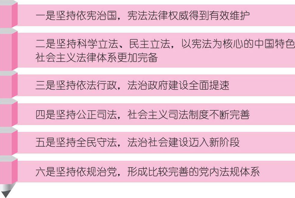 全面依法治国是中国特色社会主义的本质要求和重要保障。必须把党的领导贯彻落实到依法治国全过程和各方面,坚定不移走中国特色社会主义法治道路,完善以宪法为核心的中国特色社会主义法律体系,建设中国特色社会主义法治体系,建设社会主义法治国家,发展中国特色社会主义法治理论,坚持依法治国、依法执政、依法行政共同推进,坚持法治国家、法治政府、法治社会一体建设,坚持依法治国和以德治国相结合,依法治国和依规治党有机统一,深化司法体制改革,提高全民族法治素养和道德素质。