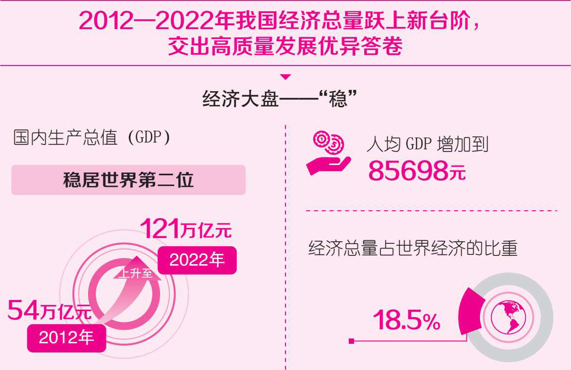 党的十八大以来,我国经济发展平衡性、协调性、可持续性明显增强,国内生产总值突破百万亿元大关,人均国内生产总值超过 1 万美元,国家经济实力、科技实力、综合国力跃上新台阶,我国经济迈上更高质量、更有效率、更加公平、更可持续、更为安全的发展之路。