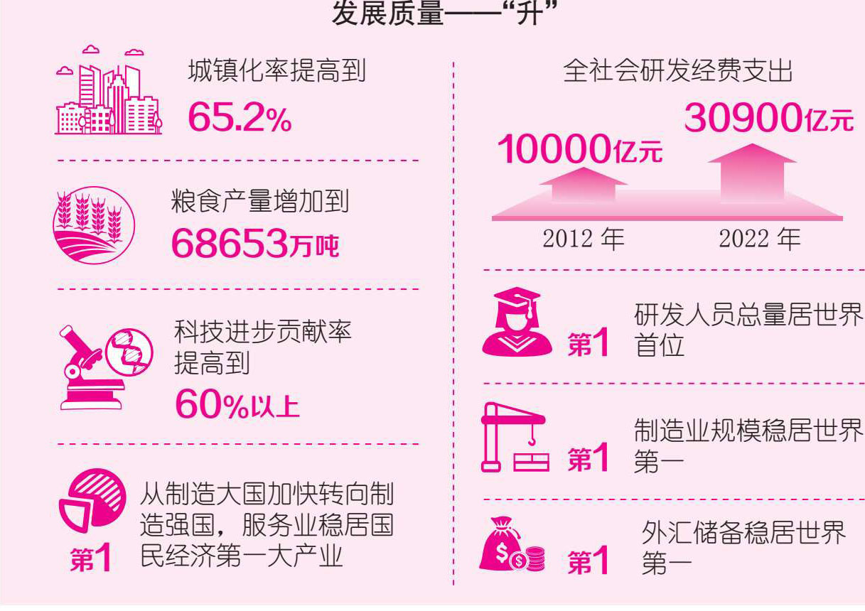 党的十八大以来,我国经济发展平衡性、协调性、可持续性明显增强,国内生产总值突破百万亿元大关,人均国内生产总值超过 1 万美元,国家经济实力、科技实力、综合国力跃上新台阶,我国经济迈上更高质量、更有效率、更加公平、更可持续、更为安全的发展之路。
