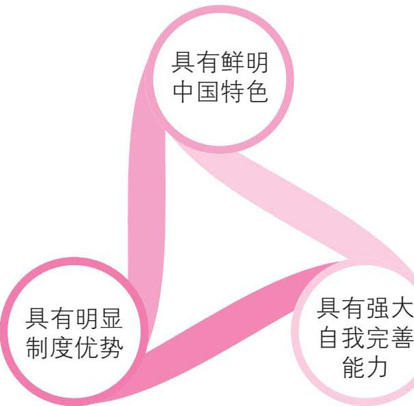 中国特色社会主义制度是党和人民在长期实践探索中形成的科学制度体系,是以马克思主义为指导、植根中国大地、具有深厚中华文化根基、深得人民拥护的制度,是具有强大生命力和巨大优越性的制度,是能够持续推动拥有 14 亿多人口的大国进步和发展、确保拥有5000 多年文明史的中华民族实现伟大复兴的制度。中国特色社会主义道路是当代中国大踏步赶上时代、引领时代发展的康庄大道,是中国共产党和中国人民团结的旗帜、奋进的旗帜、胜利的旗帜,必须倍加珍惜、长期坚持、永不动摇。
