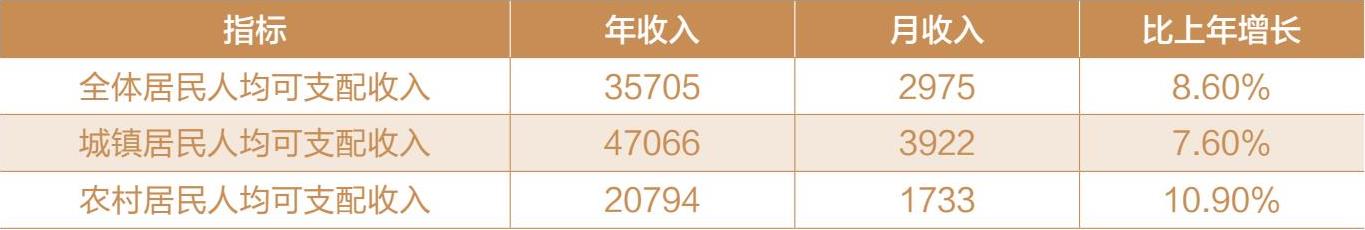 随着山东省经济总量的增加,城乡居民收入持续增长,基本实现同步,2021年全体居民可支配收入达到35705元,比2020年增长8.6%。其中,城镇居民人均可支配收入47066元,增长7.6%;农村居民人均可支配收入20794元,增长10.9%(见表2-6)。居民人均消费支出22821元,增长9.0%。其中,城镇居民人均消费支出29314元,增长7.4%;农村居民人均消费支出14299元,增长12.9%。居民人均住房建筑面积41.3平方米。2022年上半年,全省居民人均可支配收入19129元,同比增长4.5%,实际增长3.1%。其中,城镇、农村居民人均可支配收入分别为24463元和12150元,增长3.6%和5.3%,扣除价格因素,实际增长为2.3%和3.4%。