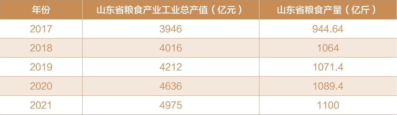 表2-7 2017—2021年山东粮食产业工业总产值和粮食产量
