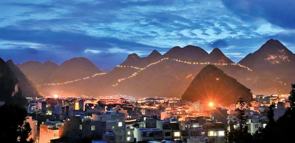 图5 乐业县晚霞山健身步道的路灯装点山城夜景