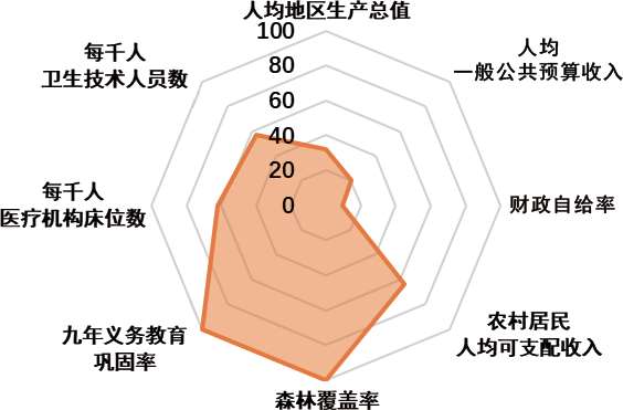 图3 乐业县2020年经济社会发展相对全国水平画像