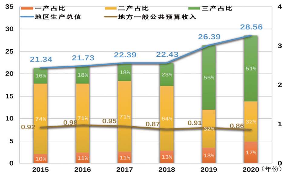 “十三五”时期,黑水县地区生产总值突破28亿元,第三产业产值占比超过50%,地方公共财政收入突破8000万元。