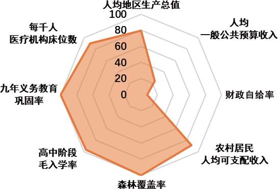 图3 黑水县2020年经济社会发展相对全国水平画像