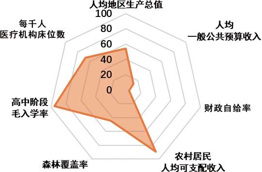 图3 若尔盖县2020年经济社会发展相对全国水平画像
