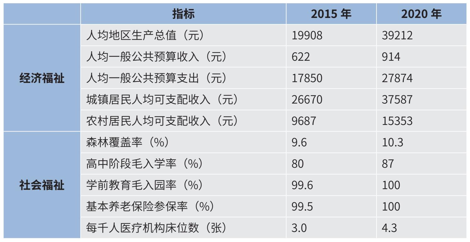 “十三五”时期,全县人均地区生产总值增长近1倍,城乡居民人均可支配收入显著增加,城乡居民收入差距缩小,学前教育、高中阶段教育普及程度稳步提升。