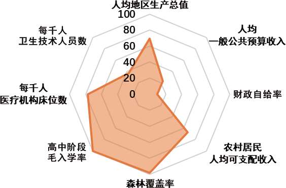 图3 化德县2020年经济社会发展相对全国水平画像