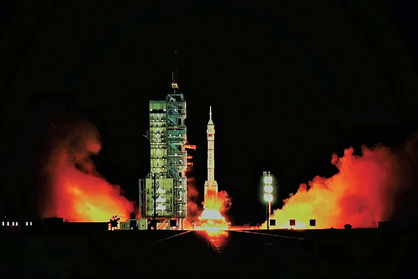 神舟十三号载人飞船在内蒙古额济纳旗境内的东风航天城成功发射(额济纳旗融媒体中心记者 敖琪 摄)