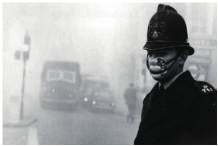 世界八大公害事件,是20世纪30年代至60年代,因现代化学、冶炼、汽车等工业的兴起和发展,环境污染和破坏严重加剧,发生的8起震惊世界的公害事件:比利时马斯河谷烟雾事件、美国多诺拉镇烟雾事件、英国伦敦烟雾事件、美国洛杉矶光化学烟雾事件、日本水俣病事件、日本富山骨痛病事件、日本四日市哮喘病事件、日本米糠油事件。图为英国伦敦烟雾事件中全副武装的警察在执勤。