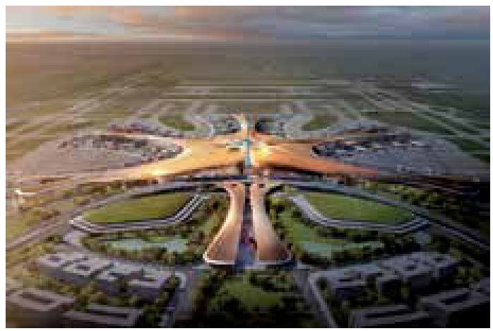 京冀大地,凤凰展翅。2019年9月,拥有世界最大规模单体航站楼的北京大兴国际机场正式投入运营。这座现代化机场仅用了5年时间就建成,建筑面积约140万平方米,耗资800亿元人民币,年旅客吞吐量可达1亿人次,创造了世界建筑史上的多个之最,引起国内外广泛关注。英国《卫报》发布的“世界新七大奇迹”中,北京大兴国际机场位列榜首;美国有线电视新闻网(CNN)也评价,这座新机场是2019年全世界最激动人心的建筑。