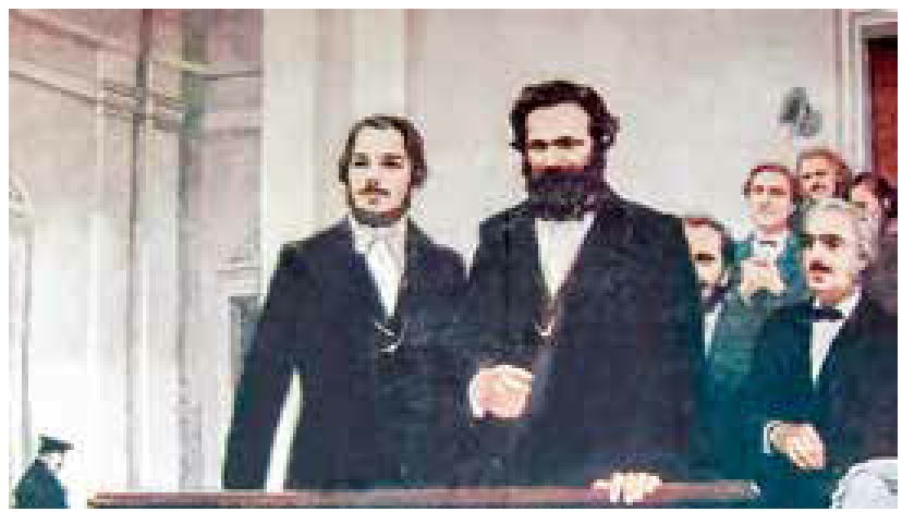 1848年,两个年轻人共同撰写的《共产党宣言》横空出世,第一个马克思主义政党“共产主义者同盟”有了自己的行动纲领,社会主义从人们的美好想象变为科学的革命运动。从此,马克思主义政党和科学社会主义这对“孪生兄弟”,在世界社会主义运动潮起潮落中相伴而行、休戚与共。