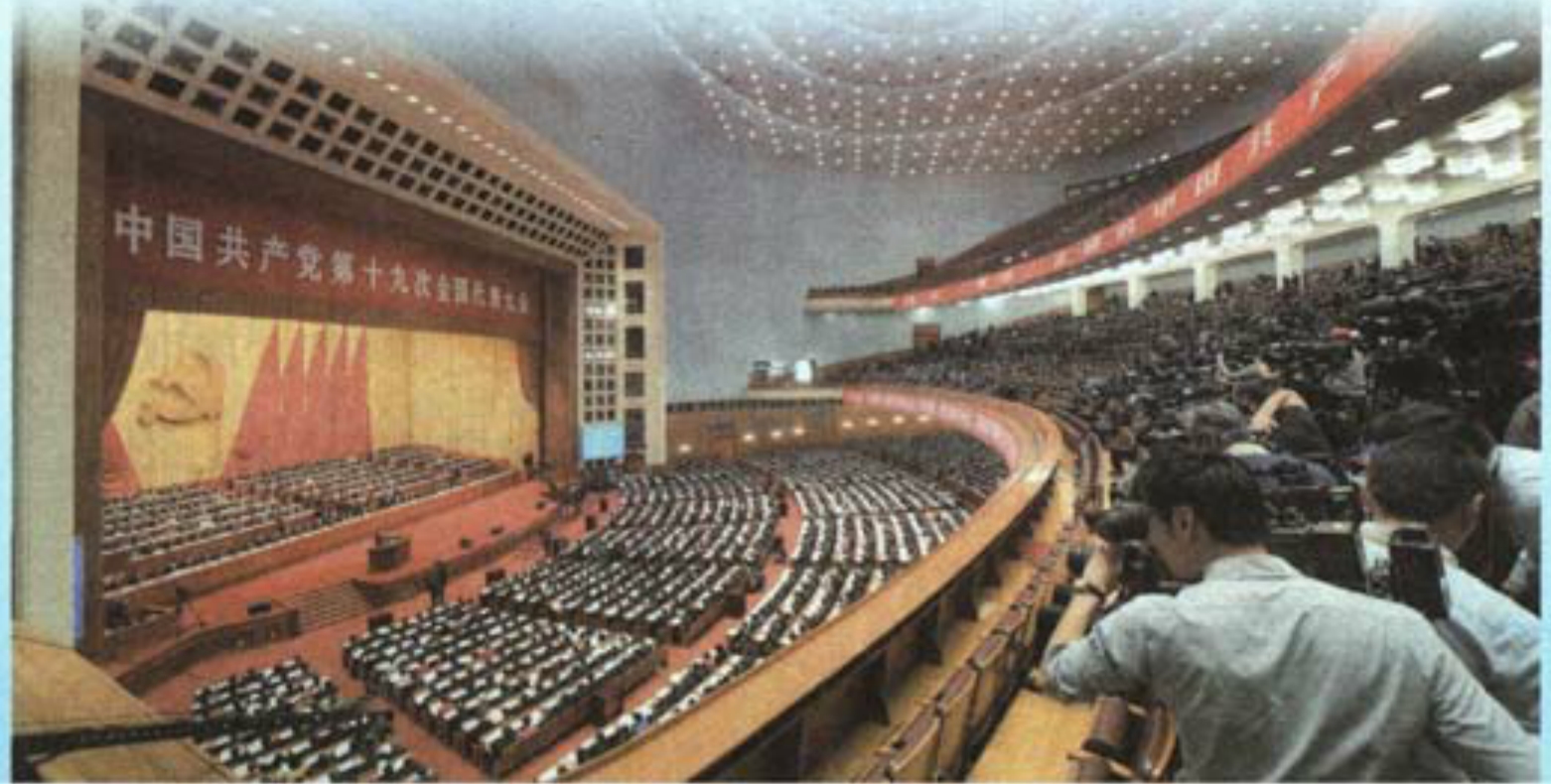 金秋时节,丹桂飘香。2017年10月,在北京人民大会堂,万众瞩目的中国共产党第十九次全国代表大会隆重召开。习近平总书记在会上作了题为《决胜全面建成小康社会夺取新时代中国特色社会主义伟大胜利》的报告,2300多名代表济济一堂,共谋党和国家发展大业,同绘民族复兴壮丽画卷。这次被称为“站在世界地图前”召开的大会,吸引了全球目光,160多个国家和地区的450多个主要政党发来1000多份贺电贺信,130多个国家和地区的1800多名境外记者进行了报道,世界进入“十九大时间”。