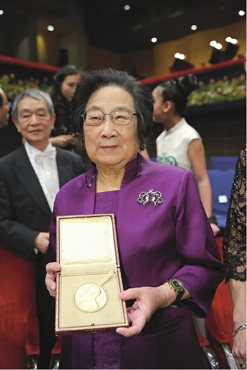 2015年10月5日,屠呦呦荣获诺贝尔生理学或医学奖,成为中国大陆第一个获得自然科学领域诺贝尔奖的科学家。屠呦呦带领她的团队经过多年探索,发现了青蒿素,这种药品可以有效降低疟疾患者的死亡率,挽救了数百万人的生命,为促进人类健康作出了卓越贡献。图为屠呦呦在瑞典斯德哥尔摩音乐厅领取诺贝尔奖。