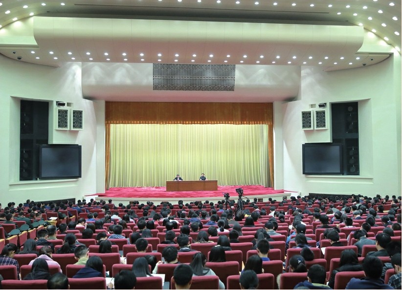 党的十八届五中全会后,中央专门组成宣讲团赴各地宣讲,共作报告33场,举办各种形式的互动交流活动50多场,直接听众近45万人,通过电视直播、网络转播等收听收看的达1900多万人。图为在北京人民大会堂举行的中央宣讲团报告会。