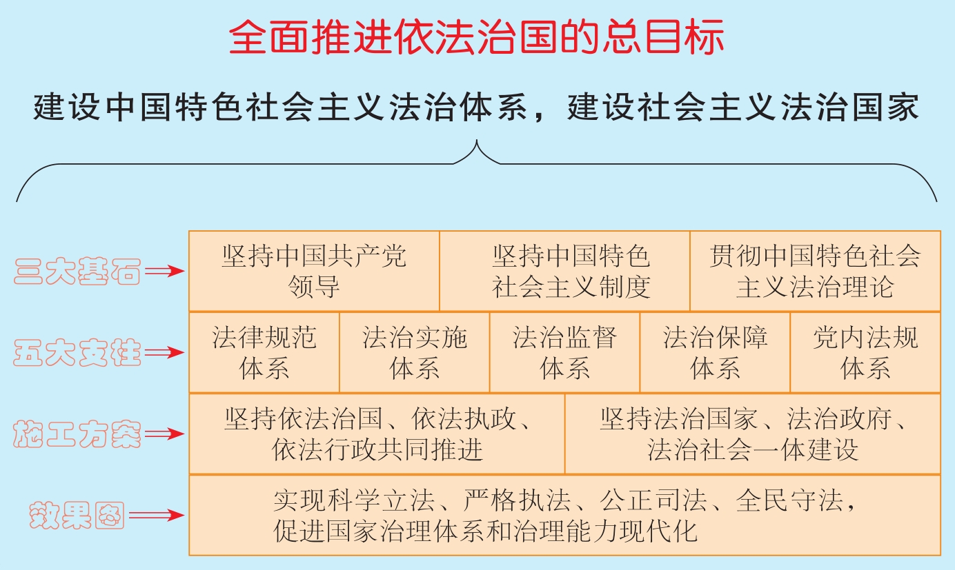 如果把建设法治中国看作建设一座恢宏的大厦,我们对全面推进依法治国总目标的丰富内涵,就可以从这样几个方面来认识和把握。