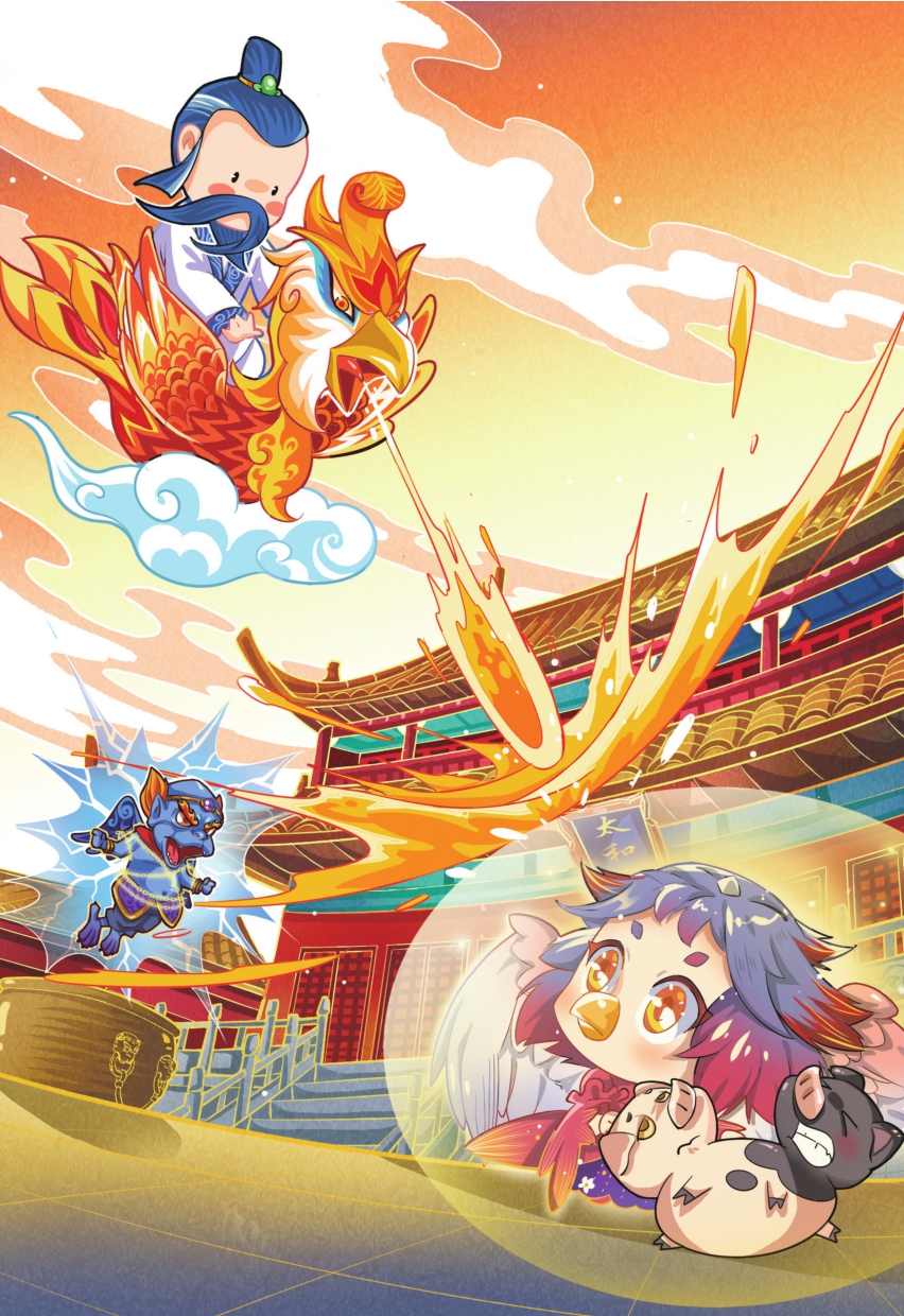 听骑凤仙人和雷震子说了这么多遍“脊兽”,我真好奇十大脊兽都是什么神兽。雷震子好像看出了我的困惑,解释道:“十大脊兽是守护故宫的神兽,因为我们总是蹲在宫殿的屋脊上,所以大家都叫我们脊兽。现在先去太和殿吧,到那里你们就知道了。看,故宫中间最高的那座大殿就是太和殿!”