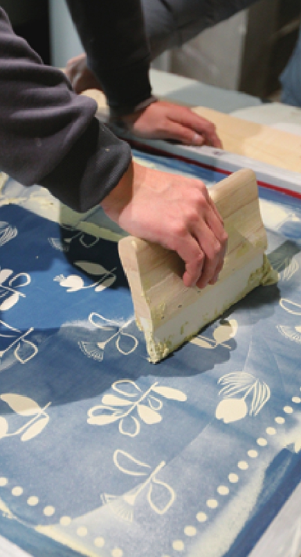 5.固定布面及型纸,用刮刀刮糊,刮刀与布面呈45度角为佳。
