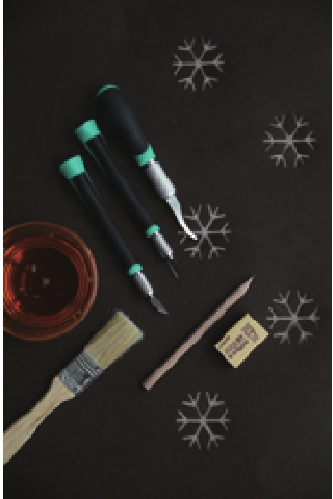 3.选用合适的刻刀在型纸上雕刻图案。刻刀可以购买套装,内含圆口、斜口、平口、弧口等不同类型的刻刀以及打洞器,可以根据需要选用。