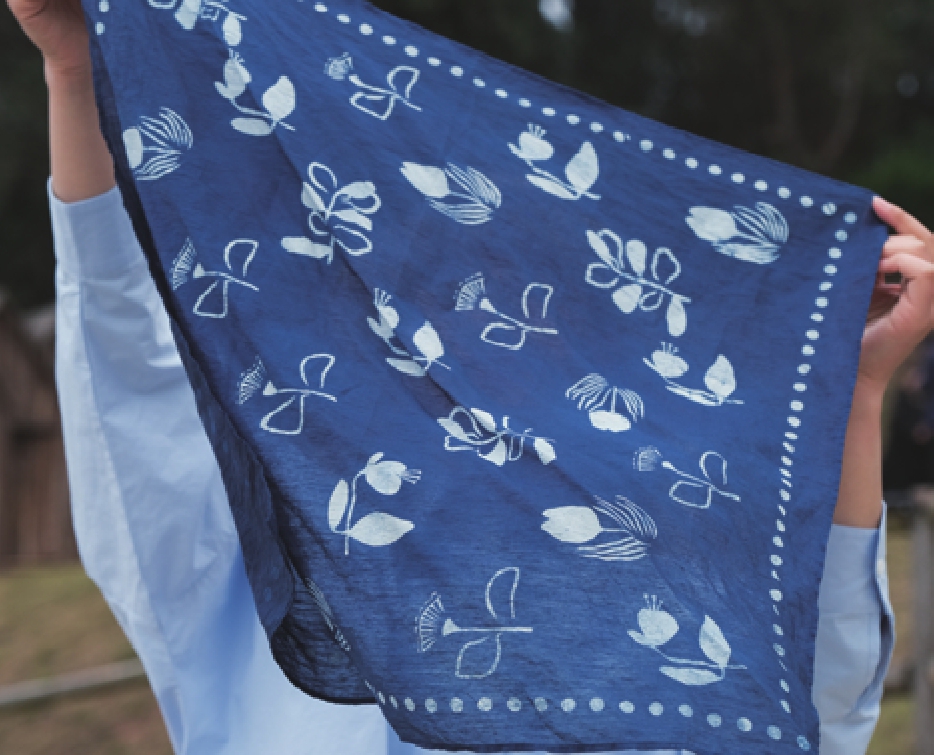 得知袁龙老师近年在研究拔染糊,很有心得。就趁着热情,把丝网和拔印也结合上了。草木染的快乐,有时候像是专供给身处其中的人。