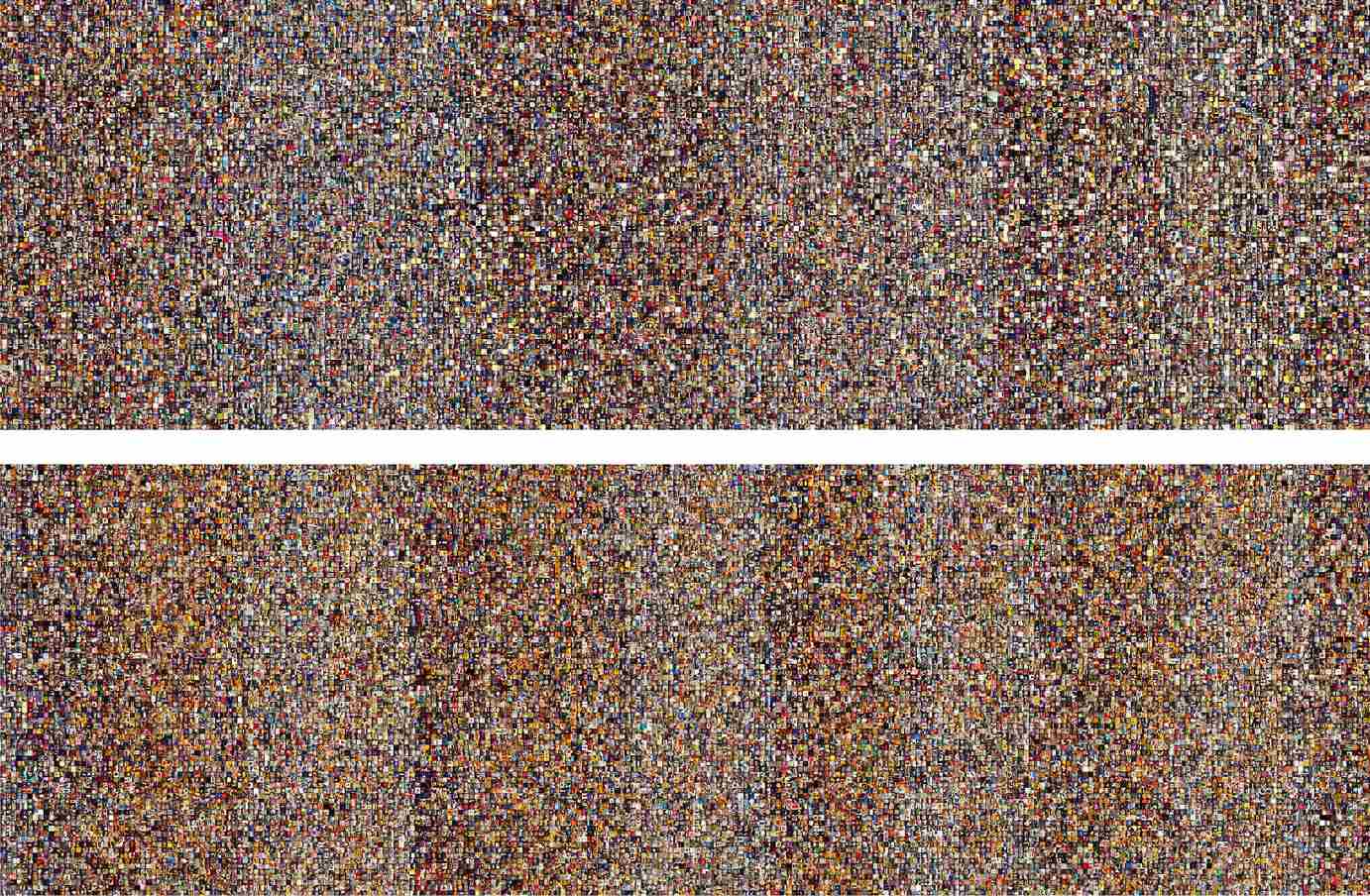 彩图15 通过图像蒙太奇将一座城市几天内上传Instagram的5万张照片与上传于东京市的5万张照片对比。上图:纽约。下图:东京。